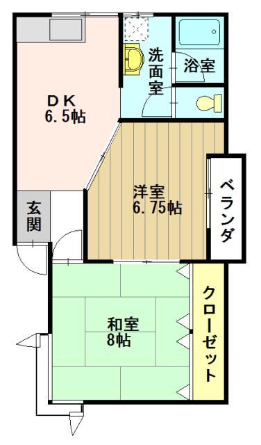 | 間取り | 2DK(DK6.5 和8 洋6.75) |